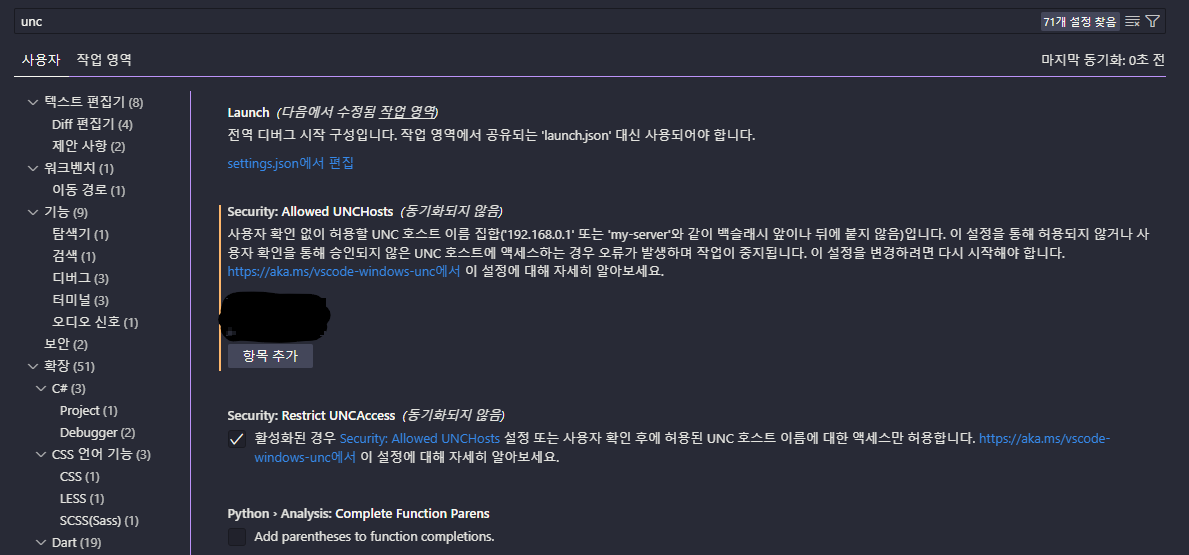 왜 잘되던 UNC 경로를 갑자기 못 잡는건지 모르겠지만 해결방법은 의외로 간단했다.